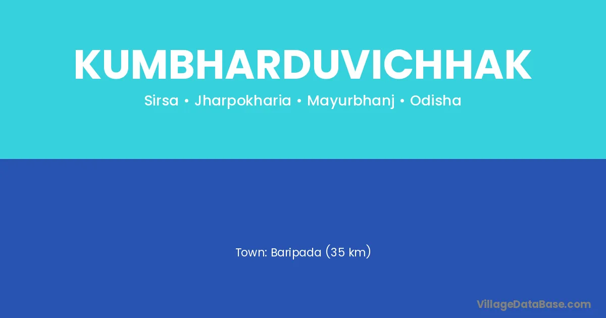 Baripada (35 km) is the nearest town to Kumbharduvichhak village for major economic activities and is located approximately 35 km away.