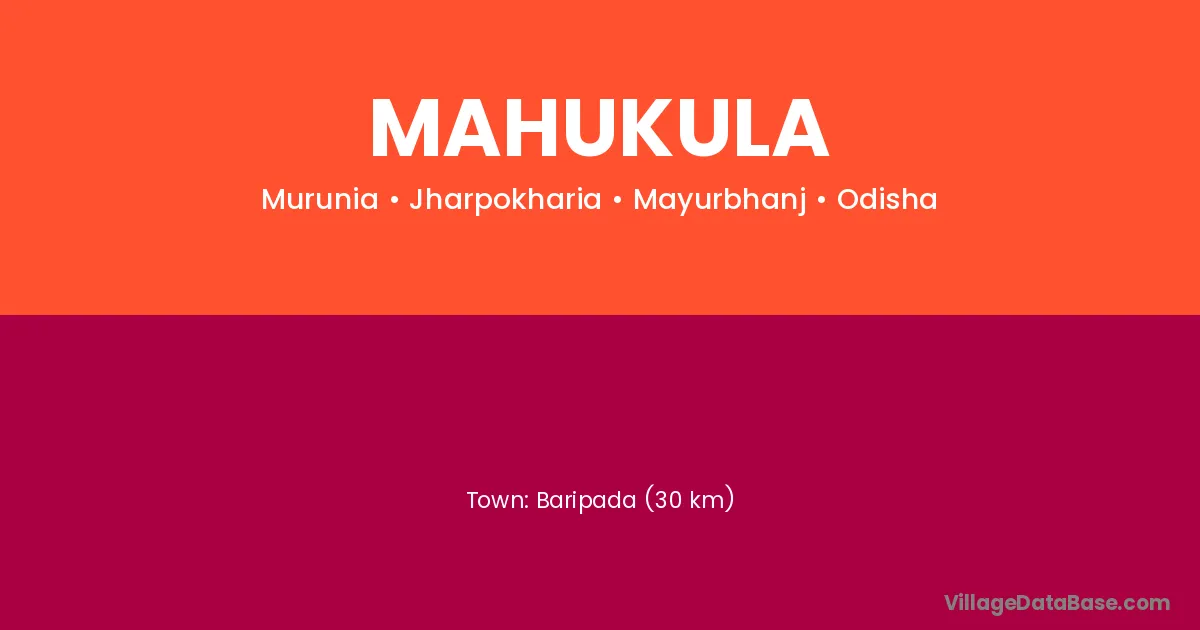 Baripada (30 km) is the nearest town to Mahukula village for major economic activities and is located approximately 30 km away.