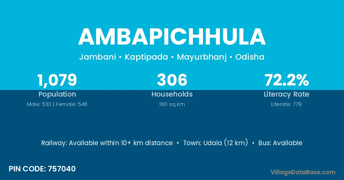 Ambapichhula village has a total population of 1,079 people, of which 533 are males and 546 are females.