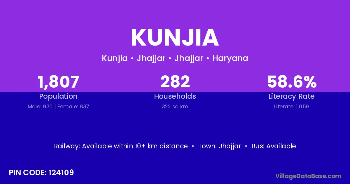 Kunjia village has a total population of 1,007 people, of which 516 are males and 491 are females.