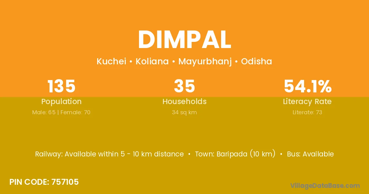 Baripada (10 km) is the nearest town to Dimpal village for major economic activities and is located approximately 10 km away.
