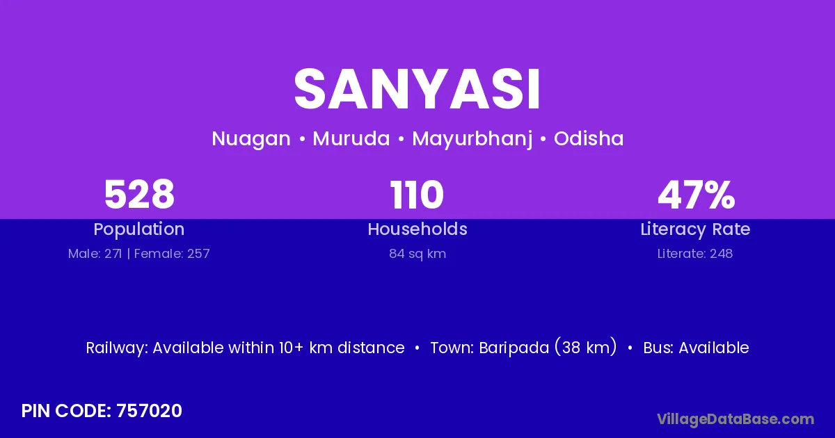 Sanyasi village has a total population of 528 people, of which 271 are males and 257 are females.