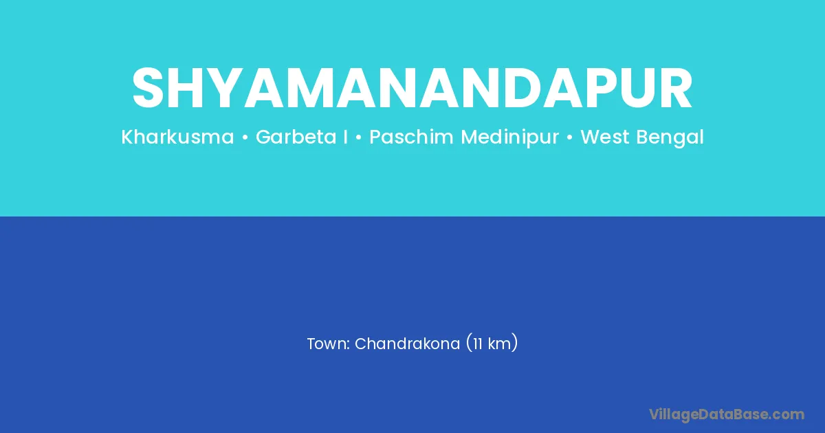 Baripada (44 km) is the nearest town to Shyamanandapur village for major economic activities and is located approximately 44 km away.