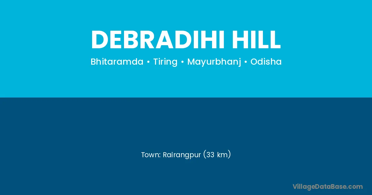 Rairangpur (33 km) is the nearest town to Debradihi Hill village for major economic activities and is located approximately 33 km away.
