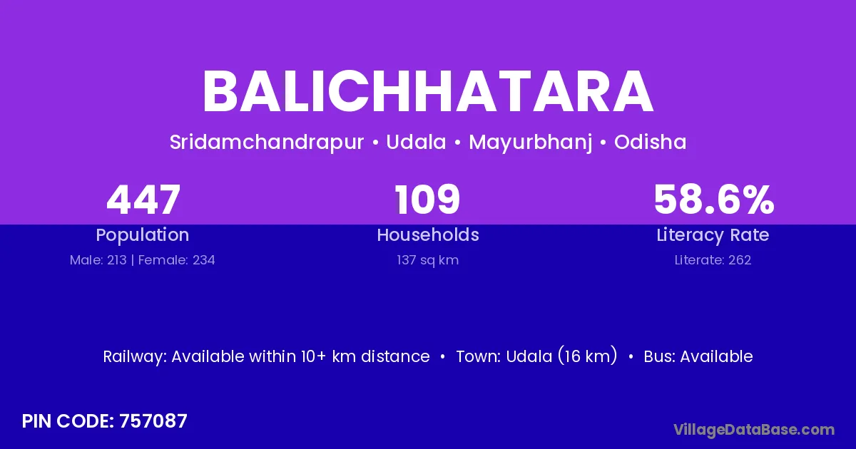 Balichhatara village has a total population of 447 people, of which 213 are males and 234 are females.