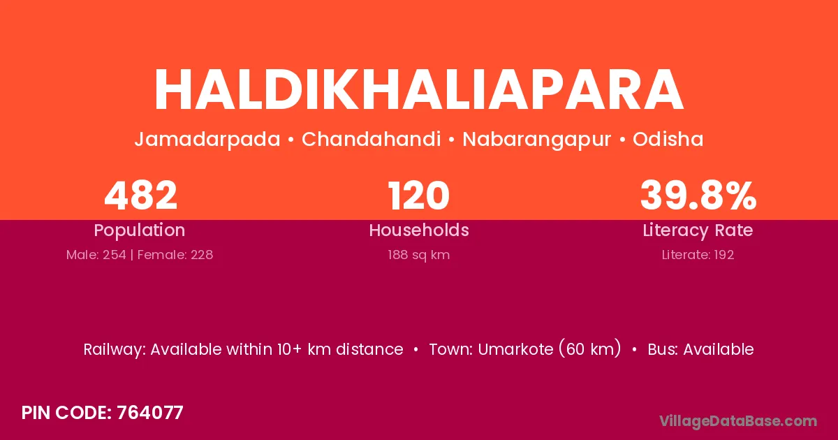 Umarkote (60 km) is the nearest town to Haldikhaliapara village for major economic activities and is located approximately 60 km away.