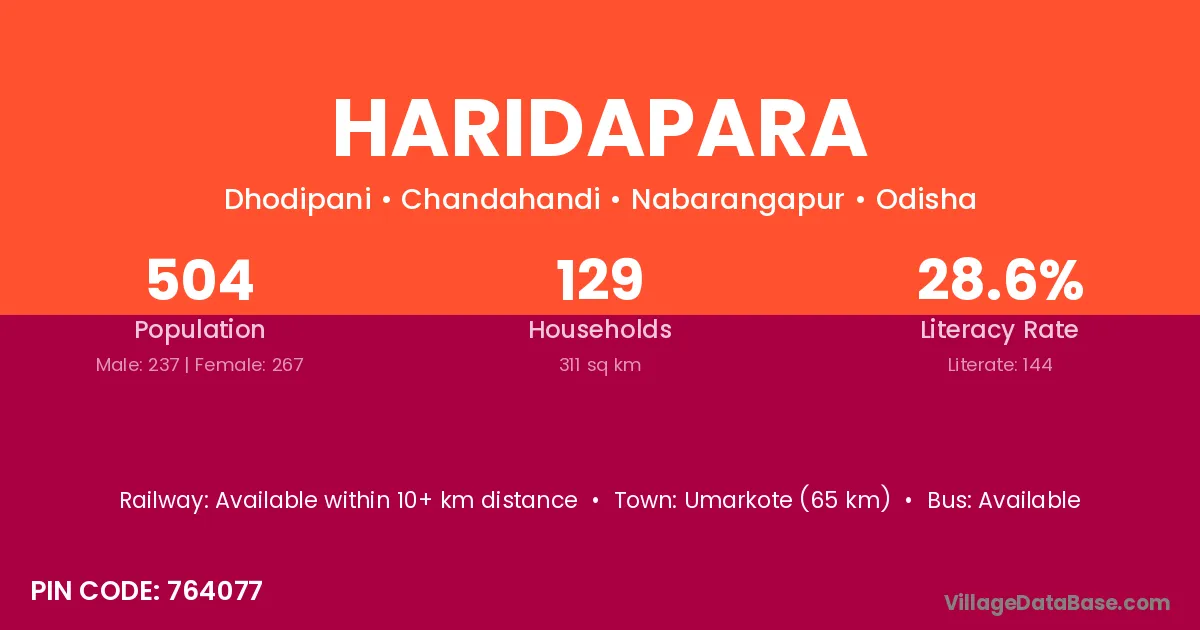 Haridapara village is located in the Chandahandi Tehsil of the Nabarangapur district in Odisha .
