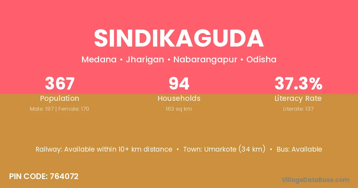 Umarkote (34 km) is the nearest town to Sindikaguda village for major economic activities and is located approximately 34 km away.