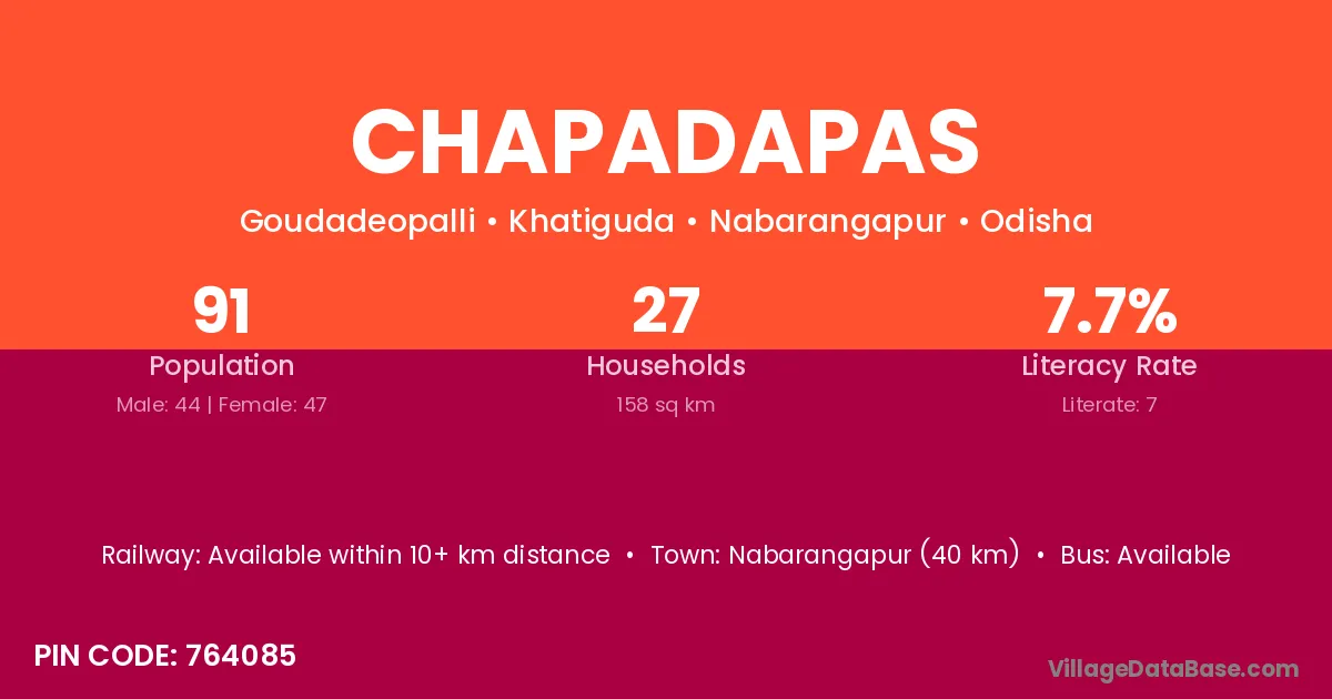 Chapadapas village is located in the Khatiguda Tehsil of the Nabarangapur district in Odisha .
