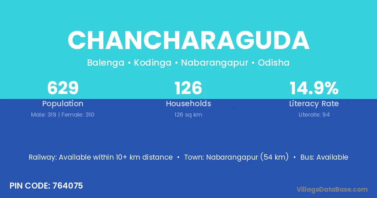 Nabarangapur (54 km) is the nearest town to Chancharaguda village for major economic activities and is located approximately 54 km away.