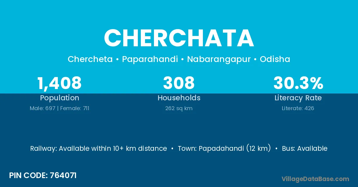 Cherchata village is located in the Paparahandi Tehsil of the Nabarangapur district in Odisha .