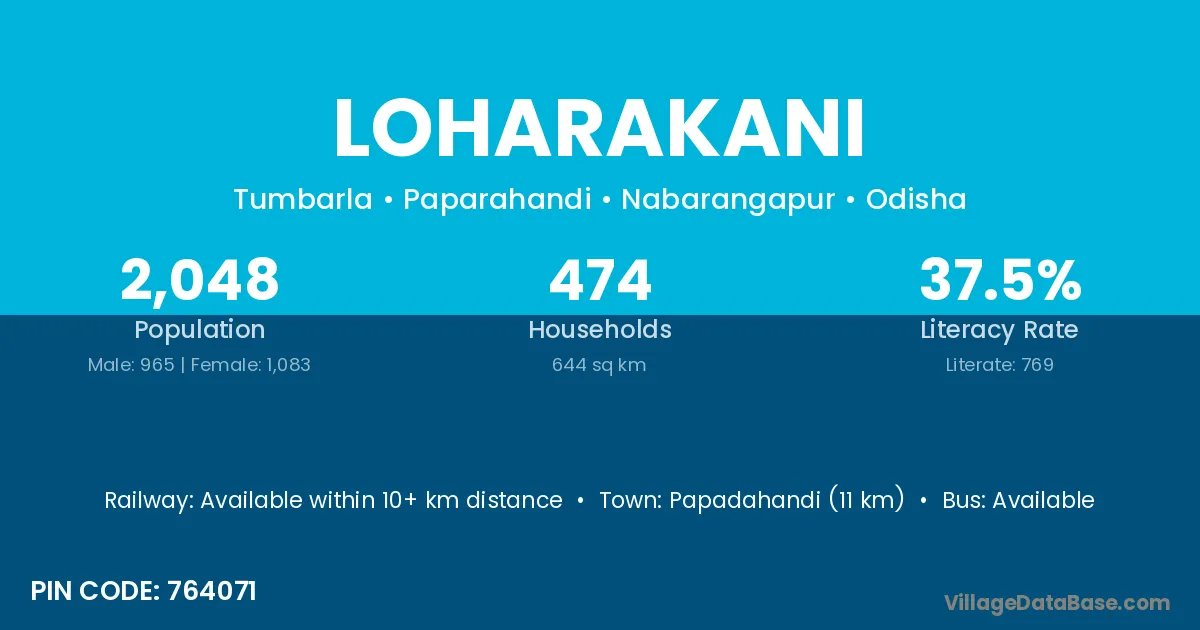 Papadahandi (11 km) is the nearest town to Loharakani village for major economic activities and is located approximately 11 km away.