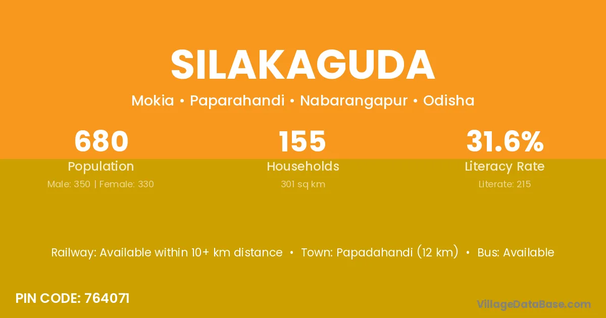 Papadahandi (12 km) is the nearest town to Silakaguda village for major economic activities and is located approximately 12 km away.