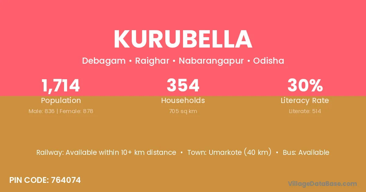 Umarkote (40 km) is the nearest town to Kurubella village for major economic activities and is located approximately 40 km away.