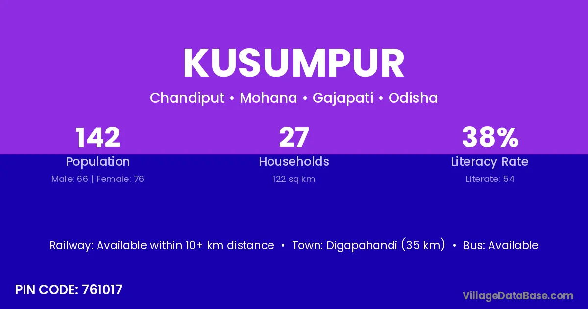 Umarkote (38 km) is the nearest town to Kusumpur village for major economic activities and is located approximately 38 km away.
