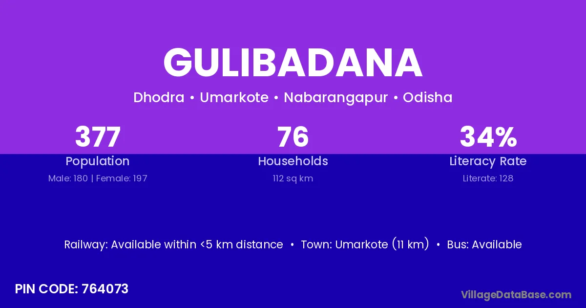 Gulibadana village is located in the Umarkote Tehsil of the Nabarangapur district in Odisha .