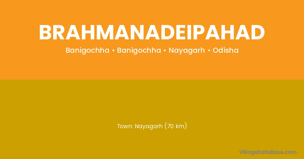 Nayagarh (70 km) is the nearest town to Brahmanadeipahad village for major economic activities and is located approximately 70 km away.