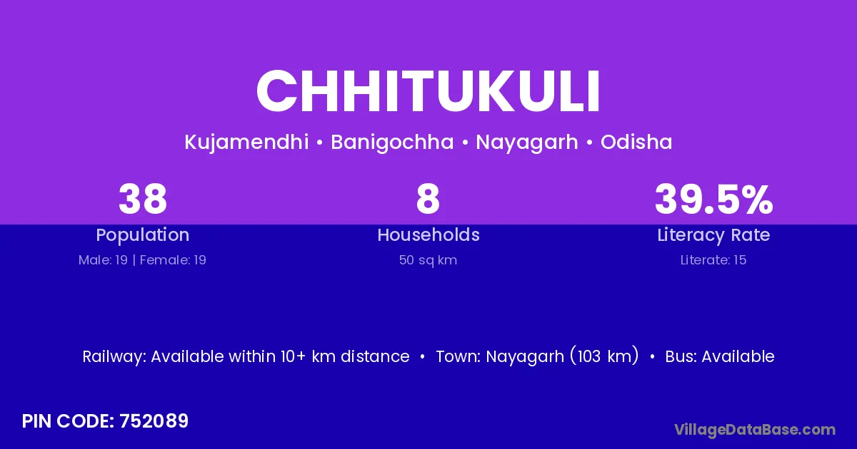 Nayagarh (103 km) is the nearest town to Chhitukuli village for major economic activities and is located approximately 103 km away.