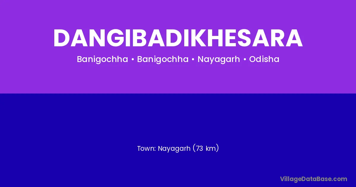 Nayagarh (73 km) is the nearest town to Dangibadikhesara village for major economic activities and is located approximately 73 km away.