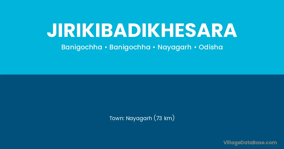 Nayagarh (73 km) is the nearest town to Jirikibadikhesara village for major economic activities and is located approximately 73 km away.