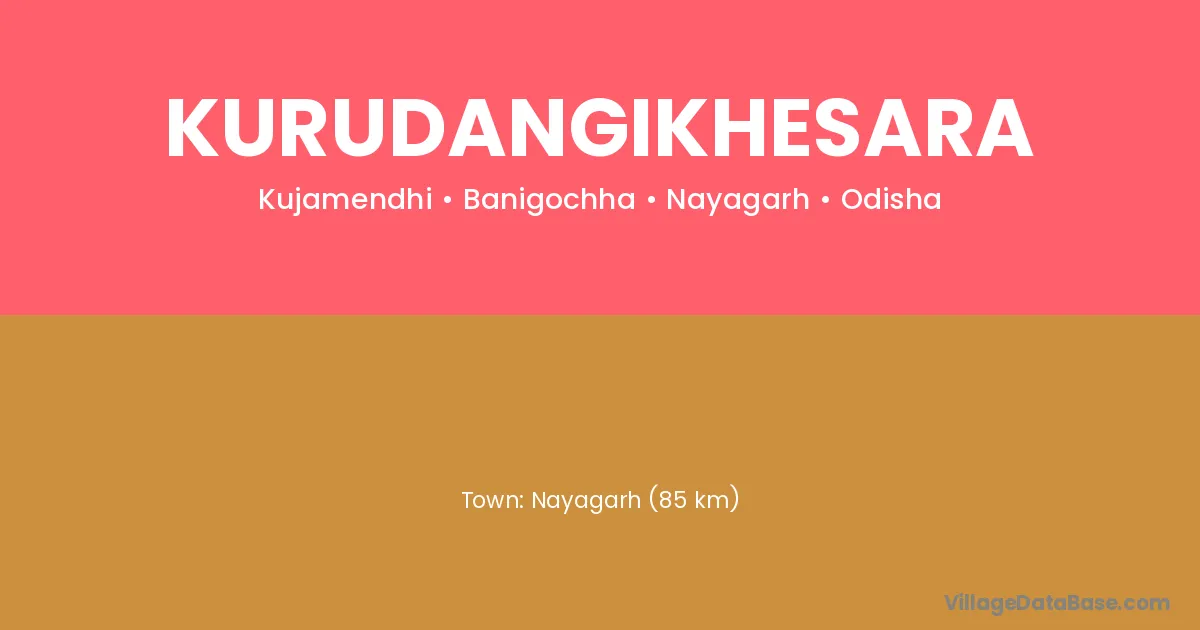 Nayagarh (85 km) is the nearest town to Kurudangikhesara village for major economic activities and is located approximately 85 km away.