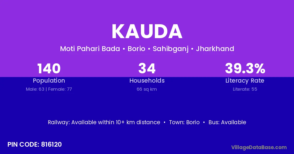 Nayagarh (37 km) is the nearest town to Kauda village for major economic activities and is located approximately 37 km away.