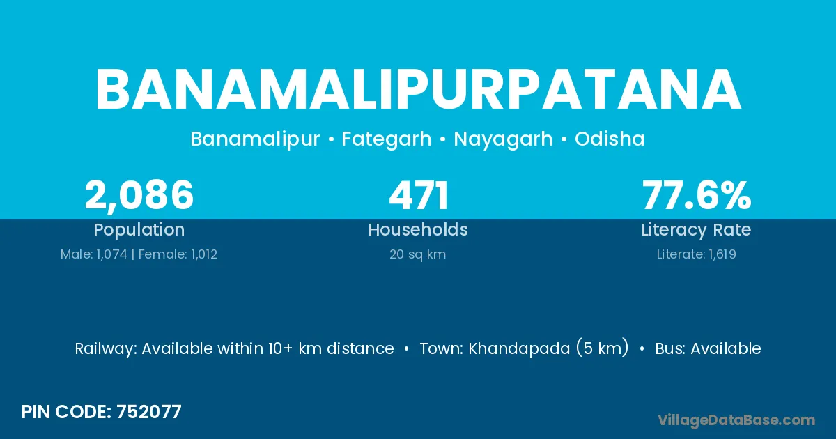 Khandapada (5 km) is the nearest town to Banamalipurpatana village for major economic activities and is located approximately 5 km away.