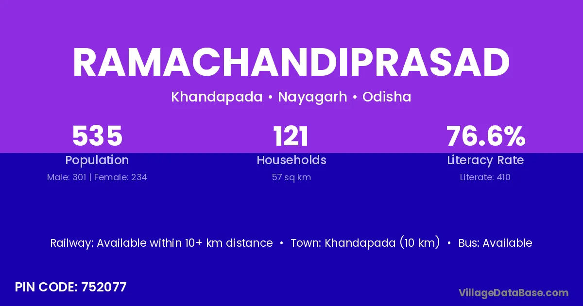 Khandapada (10 km) is the nearest town to Ramachandiprasad village for major economic activities and is located approximately 10 km away.