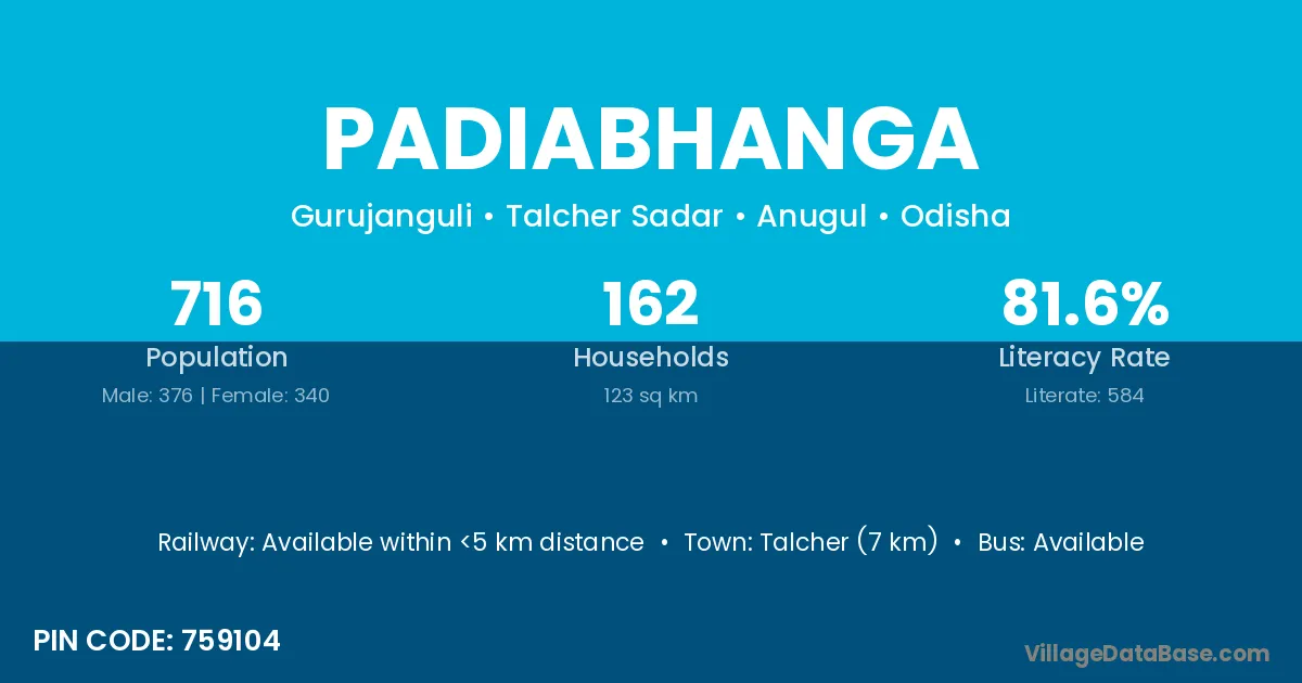 Nayagarh (10 km) is the nearest town to Padiabhanga village for major economic activities and is located approximately 10 km away.