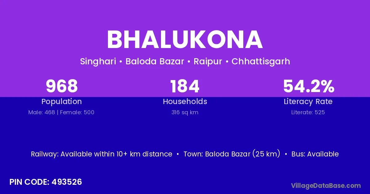 Khariar Road (28 km) is the nearest town to Bhalukona village for major economic activities and is located approximately 28 km away.