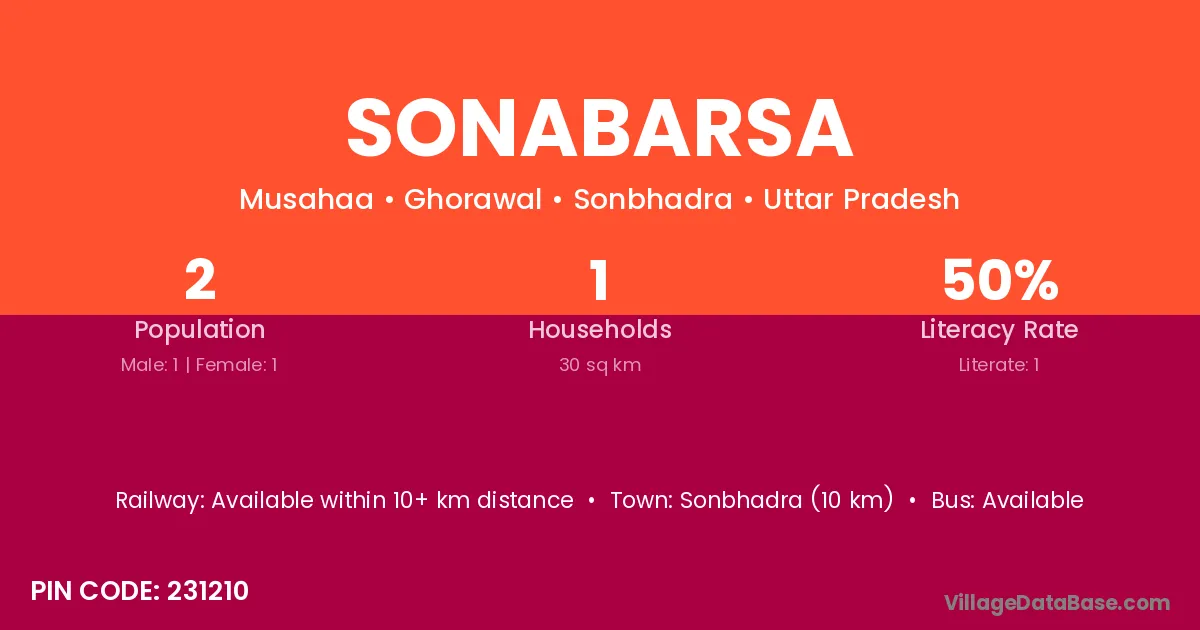 Sonabarsa village has a total population of 400 people, of which 199 are males and 201 are females.