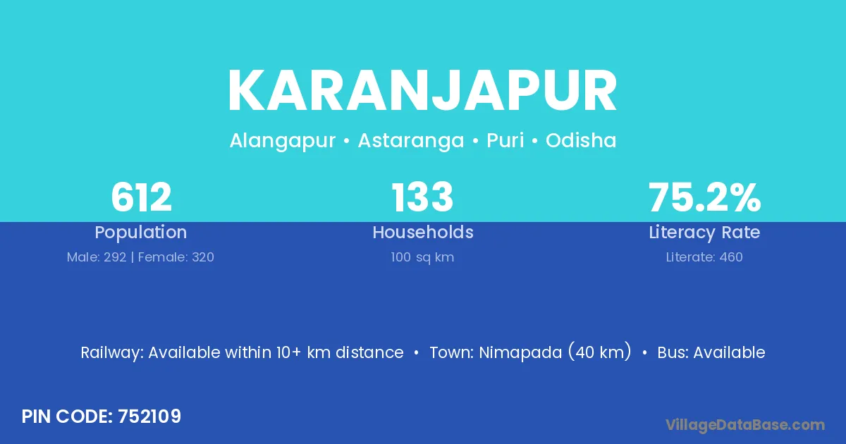 Nimapada (40 km) is the nearest town to Karanjapur village for major economic activities and is located approximately 40 km away.
