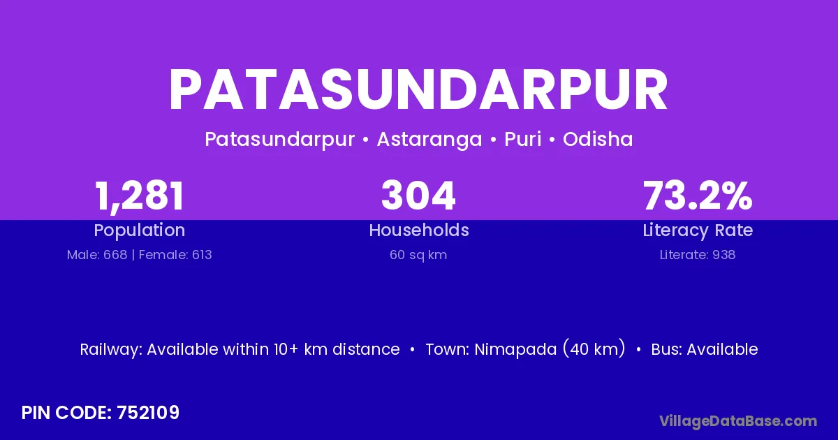 Nimapada (40 km) is the nearest town to Patasundarpur village for major economic activities and is located approximately 40 km away.