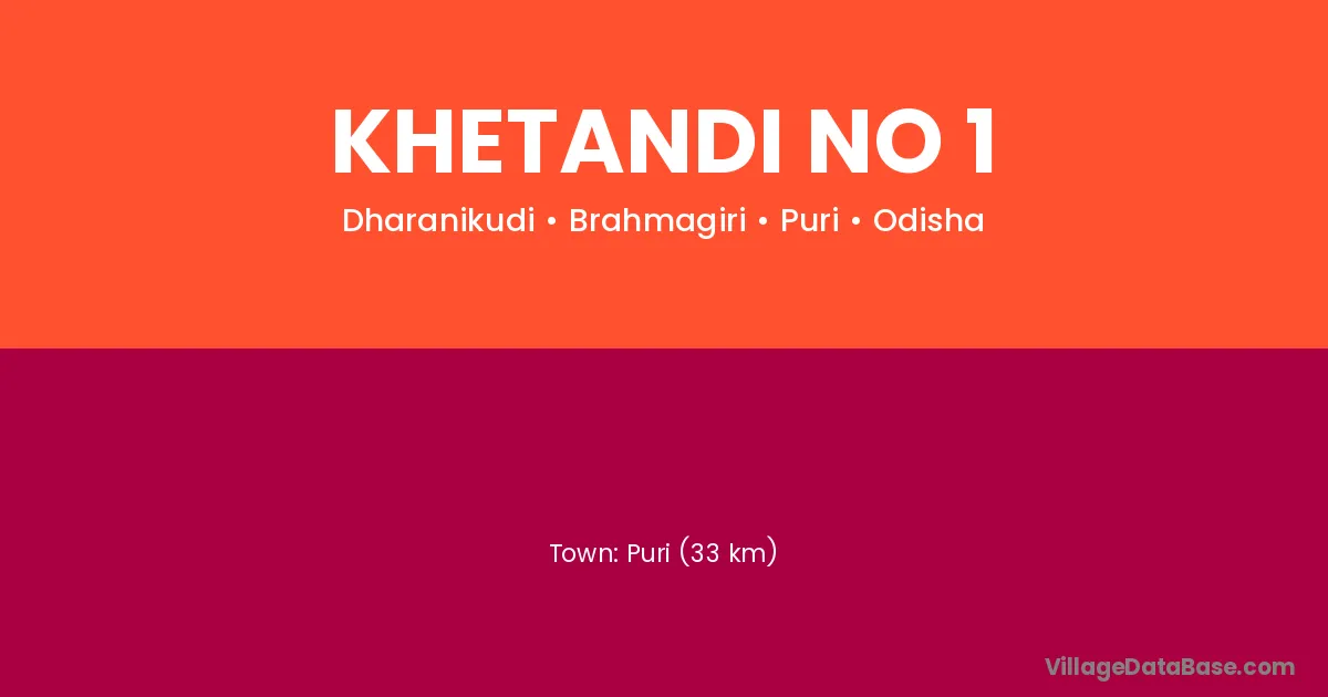 Puri (33 km) is the nearest town to Khetandi No 1 village for major economic activities and is located approximately 33 km away.