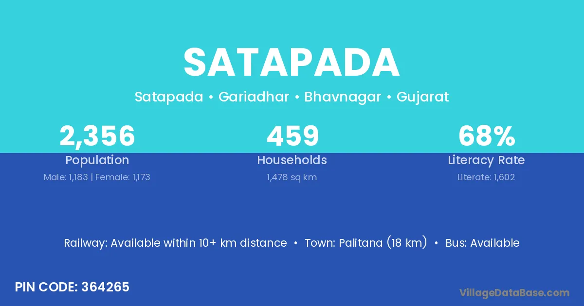 Satapada village has a total population of 3,098 people, of which 1,574 are males and 1,524 are females.