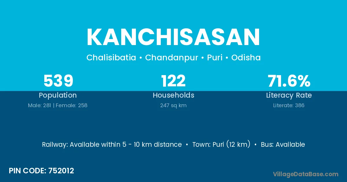 Puri (12 km) is the nearest town to Kanchisasan village for major economic activities and is located approximately 12 km away.