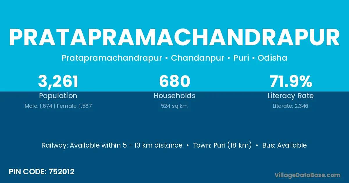 Puri (18 km) is the nearest town to Pratapramachandrapur village for major economic activities and is located approximately 18 km away.