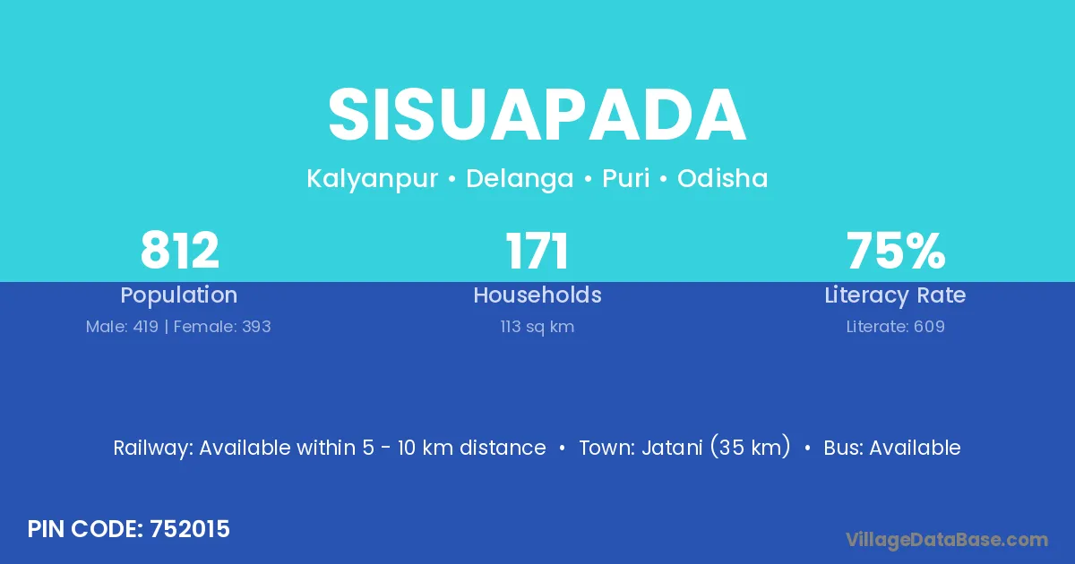 Jatani (35 km) is the nearest town to Sisuapada village for major economic activities and is located approximately 35 km away.