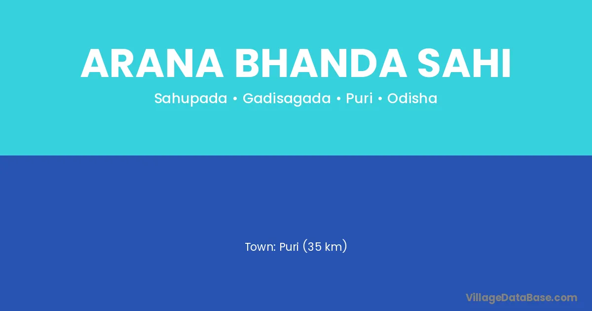 Puri (35 km) is the nearest town to Arana Bhanda Sahi village for major economic activities and is located approximately 35 km away.