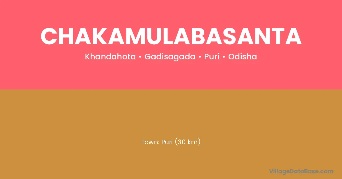 Puri (30 km) is the nearest town to Chakamulabasanta village for major economic activities and is located approximately 30 km away.