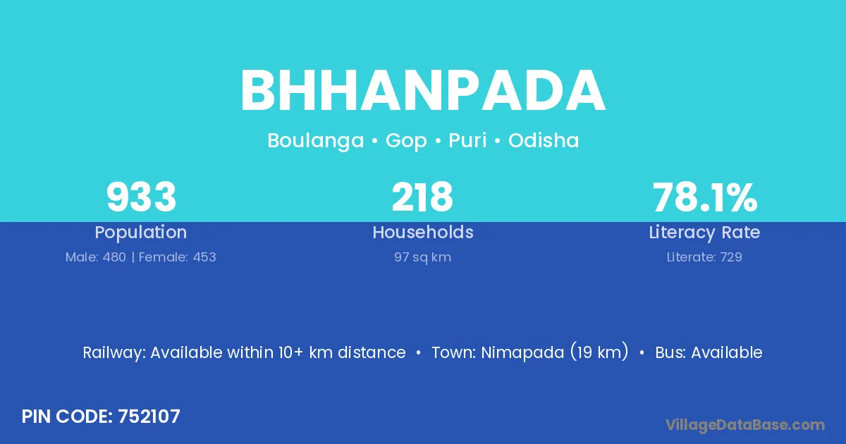 Bhhanpada village has a total population of 933 people, of which 480 are males and 453 are females.