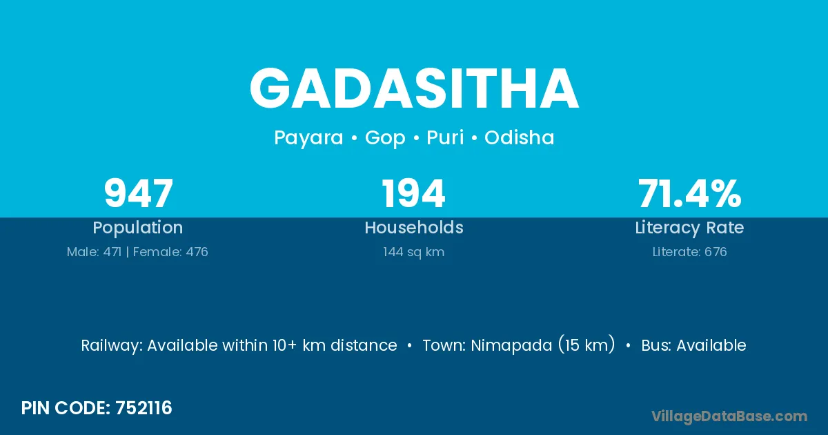According to Census 2011 information, the village code of Gadasitha village is 752116.