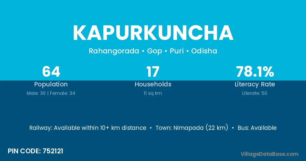 Kapurkuncha village is located in the Gop Tehsil of the Puri district in Odisha .