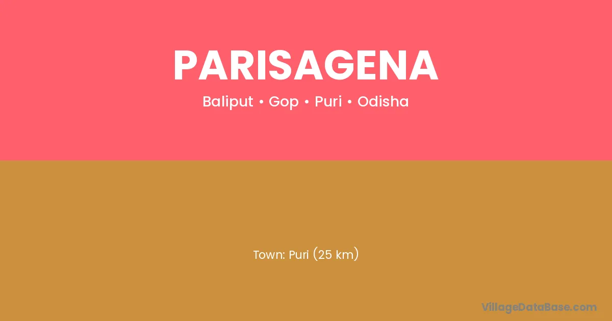 Parisagena village is located in the Gop Tehsil of the Puri district in Odisha .