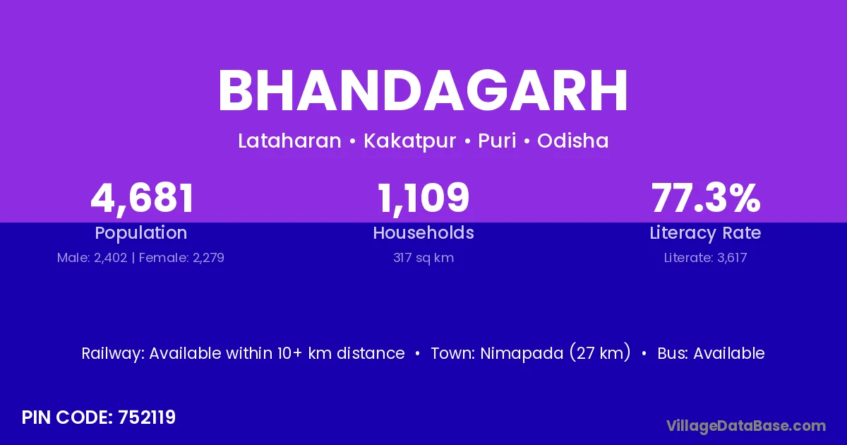 Bhandagarh village is located in the Kakatpur Tehsil of the Puri district in Odisha .