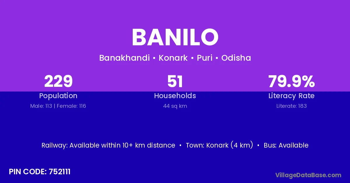 Konark (4 km) is the nearest town to Banilo village for major economic activities and is located approximately 4 km away.