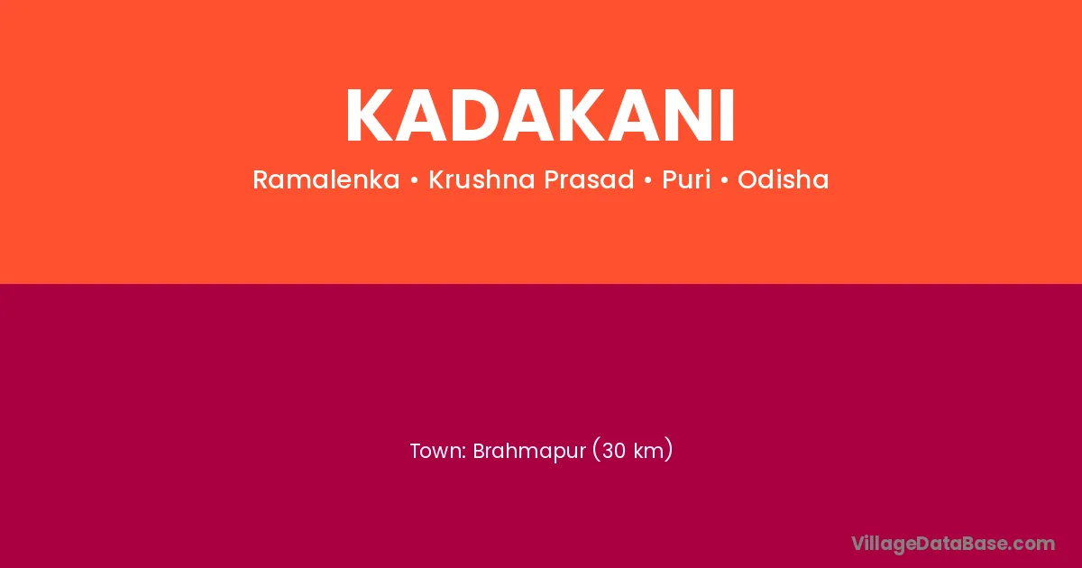 Brahmapur (30 km) is the nearest town to Kadakani village for major economic activities and is located approximately 30 km away.