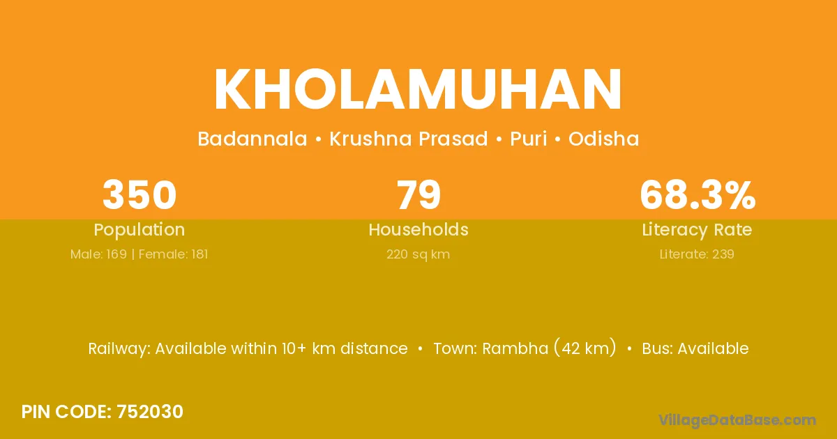 According to Census 2011 information, the village code of Kholamuhan village is 752030.