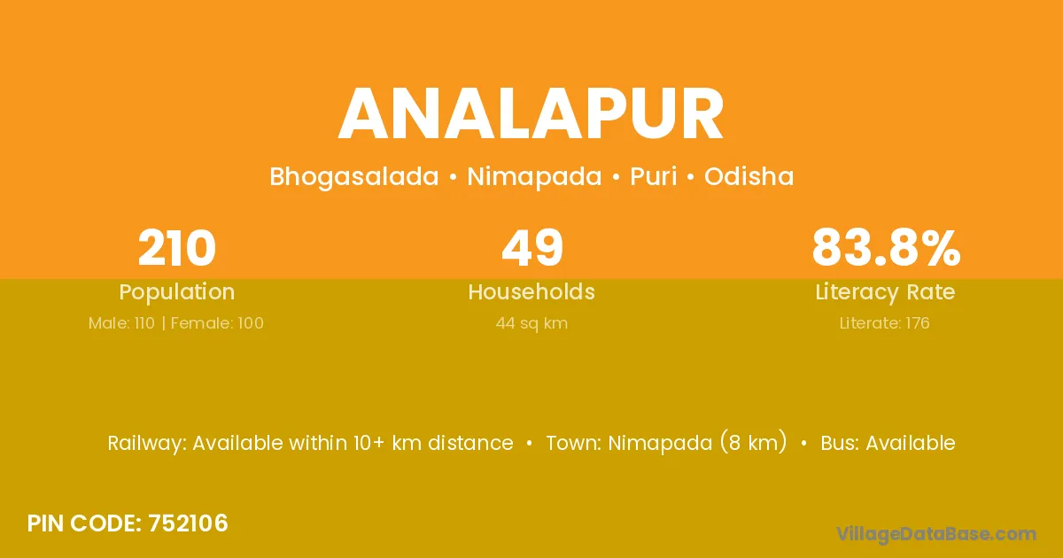 Nimapada (8 km) is the nearest town to Analapur village for major economic activities and is located approximately 8 km away.