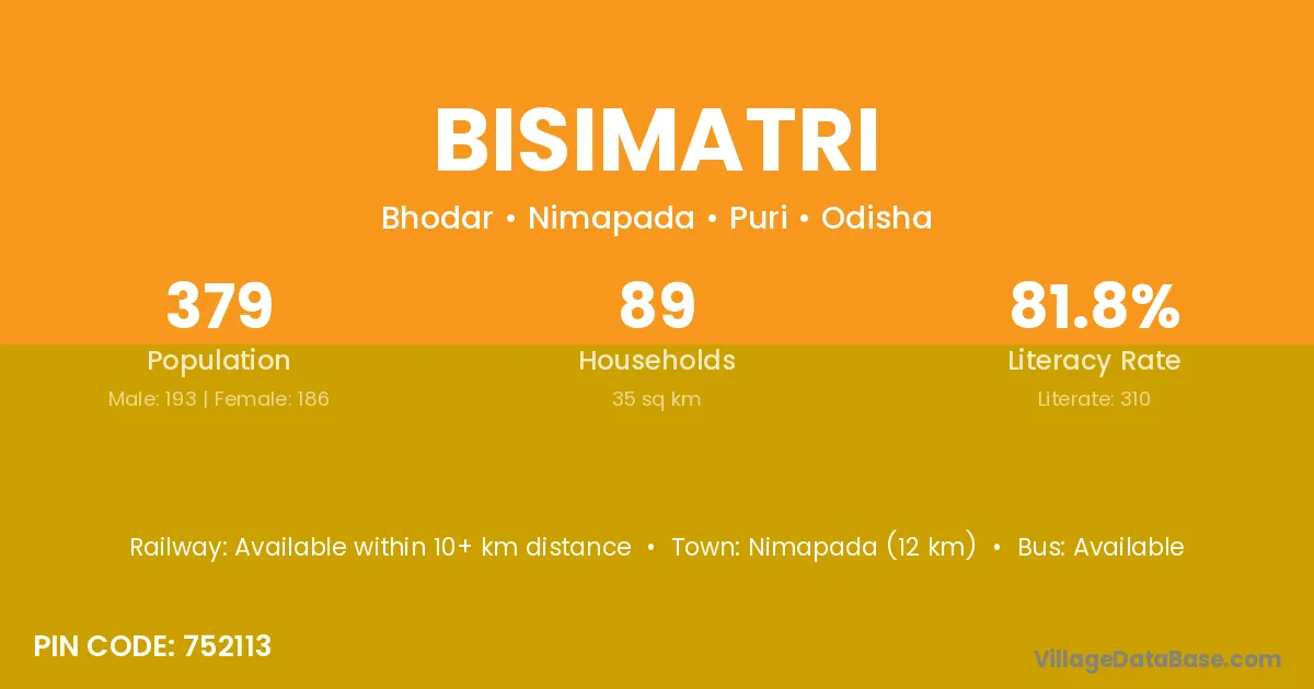 Bisimatri village is located in the Nimapada Tehsil of the Puri district in Odisha .